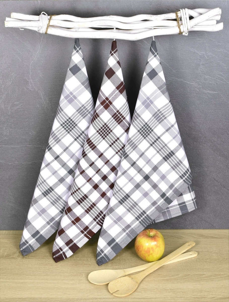 Luxusní kuchyňské utěrky, BELLA GREY MIX egyptská bavlna set 3 ks
