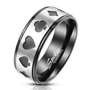 OPR1763-68 Ocelový prsten karetní motivy - hazard