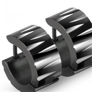 OPN1460 Ocelové náušnice - černé kroužky se zářezy