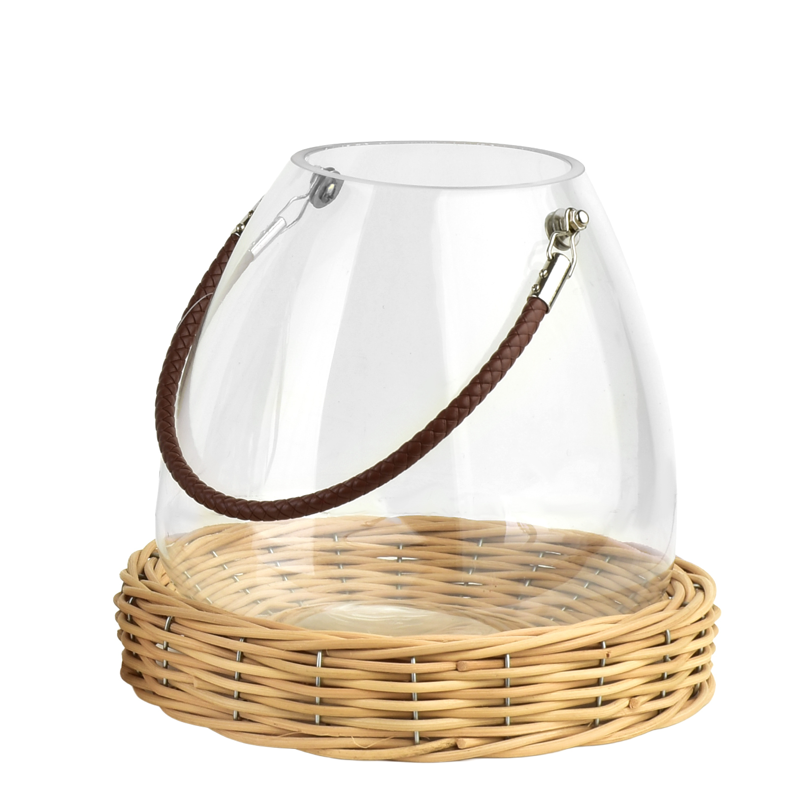GUSTAV Lampion szklany 26cmz wiklinową podstawą