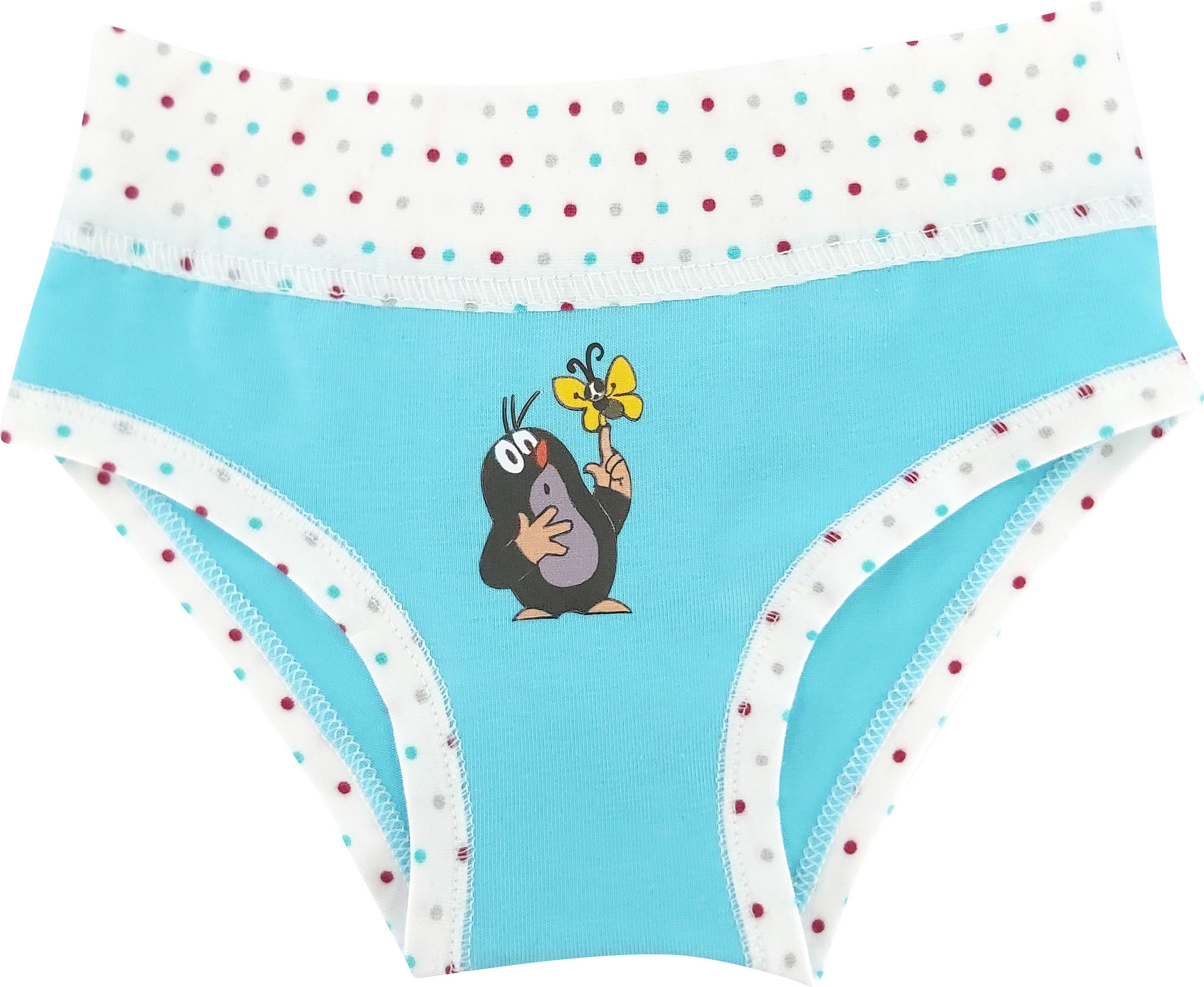 Dívčí kalhotky s Krtečkem KR 006 z kolekce Boma® pro malé slečny. Elastický bavlněný úplet je pružný, vyšší podíl bavlny zaručuje pohodlné nošení během celého dne. Lemy nohaviček a v pase jsou z puntíkatého úpletu bez škrtících gumiček, sešité plochými švy pro maximální pohodlí. Dětské kalhotky mají potisk s obrázkem oblíbeného Krtka, na každodenní nošení jak dělané.