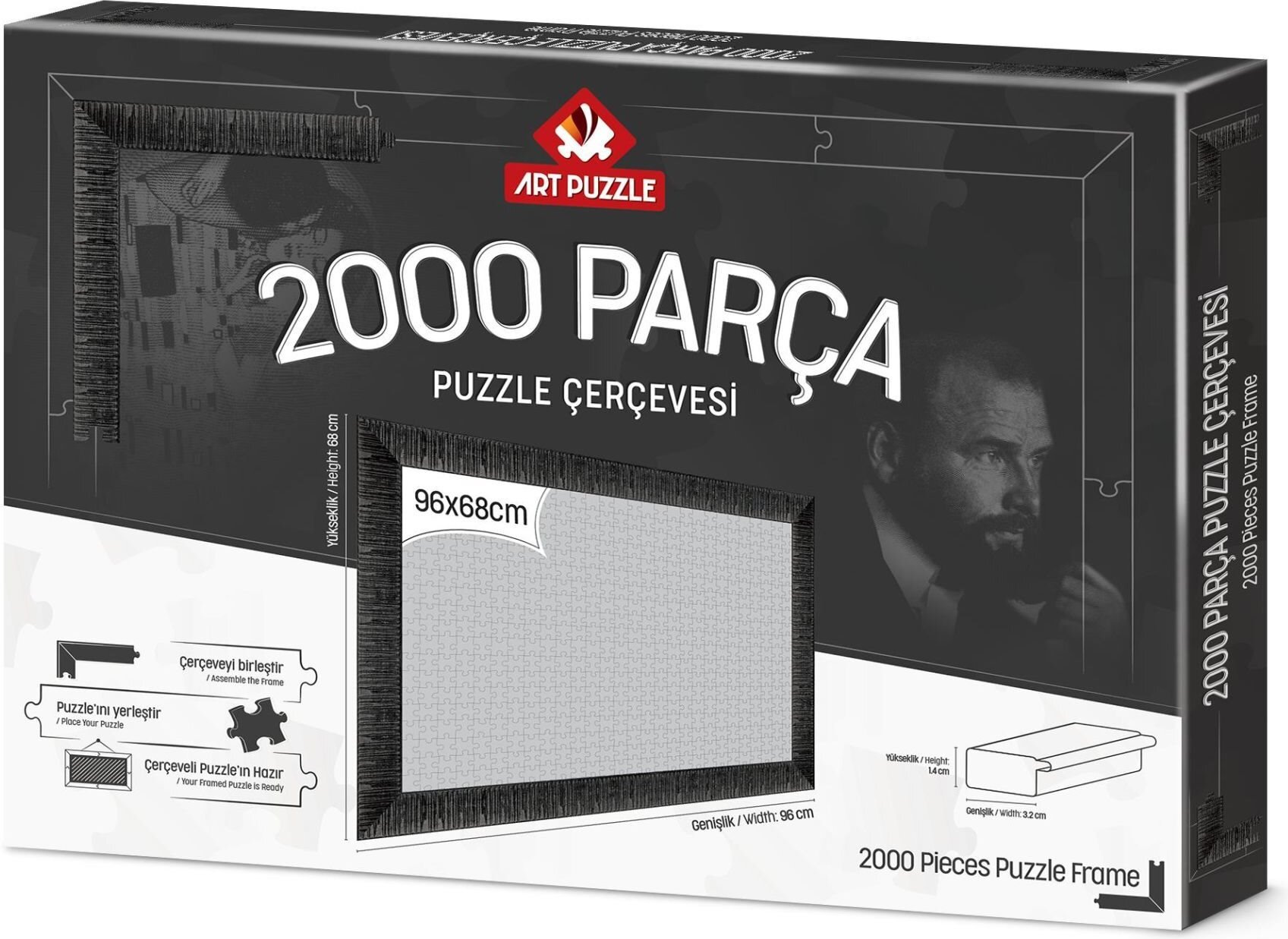 Designový rám na puzzle bez výplně. Rám je určen pro ART PUZZLE 2000 dílků o maximálním rozměru 96 x 68 cm. Lze jej použít i pro puzzle jiných značek (stejného rozměru). Balení obsahuje: rám na puzzle, kartonovou podložku a háček na zavěšení zarámovaného puzzle. Návod Nejprve puzzle slepte...