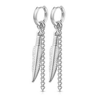 OPN1673-ST Visací ocelové náušnice s peříčky - pírka