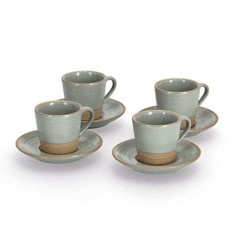 ZELLER Sada šálků s podšálkem 4ks kamenina, zelenošedé 60ml
