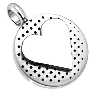 OPP1604 Ocelový přívěšek - kulatá destička se srdcem