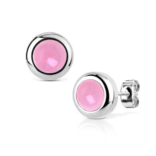 NB018-06 Ocelové náušnice růžový kámen 6mm