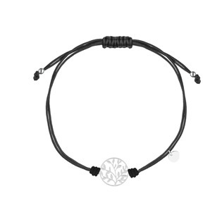 Textilní náramek je dekorovaný přívěškem ve tvaru kolečka s motivem strom života. Přívěšek je vyroben ze rhodiovaného stříbra 925/1000