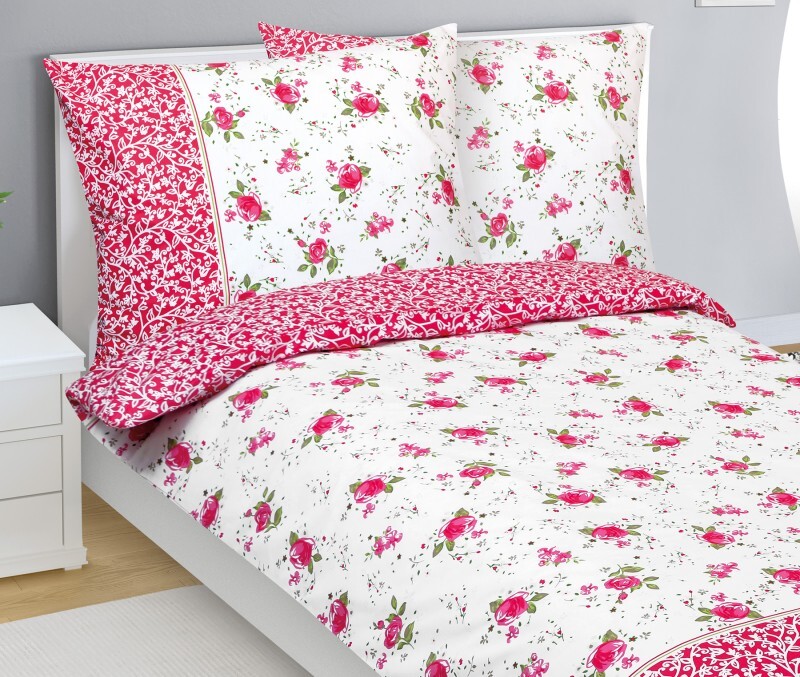 Povlečení bavlněné - Růžová,Zelená,Bílá - 140x200, 70x90 cm