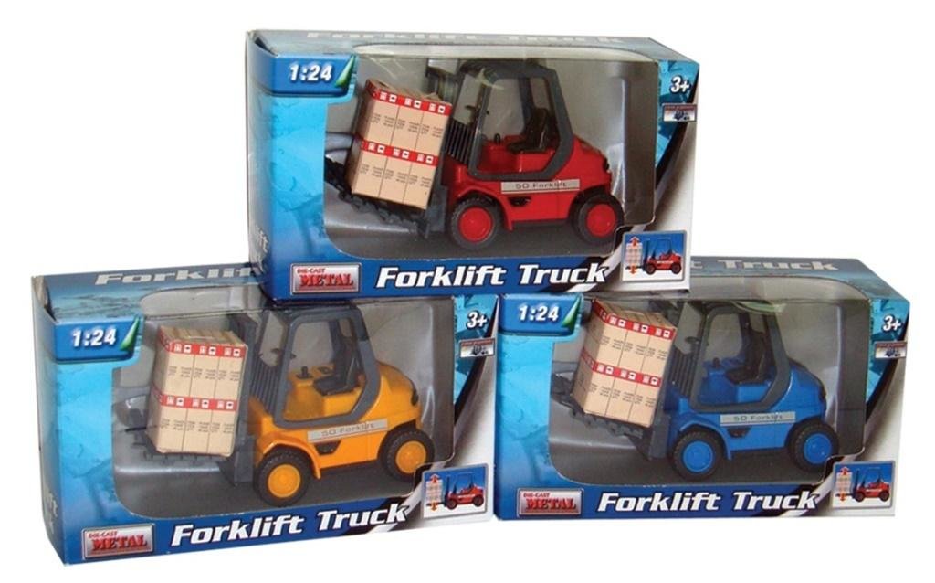 Zdjęcie poglądowe. Zabawka w kolorze czerwonym!Sztaplarka w skali 1:24 w kolorze czerwonym z paletą. przeczytaj całość