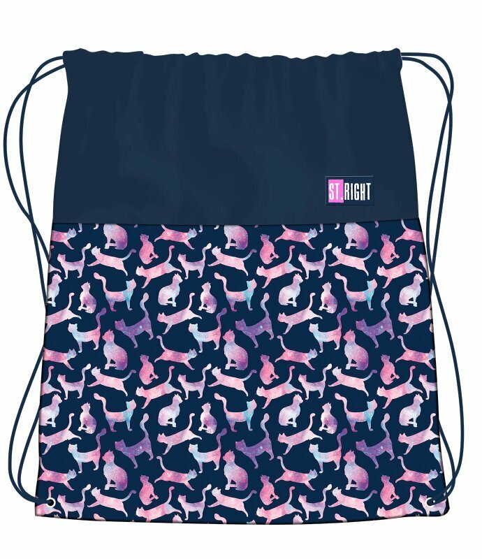 Worek na obuwie St.Right SO1 COSMIC CATSFunkcjonalność:-worek na obuwie lub strój gimnastyczny,-posiada podwójne boczne sznurki, które umożliwiają noszenie worka w rękach, na ramieniu oraz na plecach.Wymiary: 34x43cm. przeczytaj całość