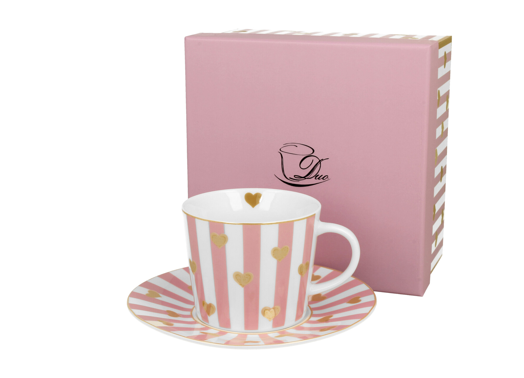 Filiżanka ze spodkiem Różowa - MAŁE SERDUSZKA