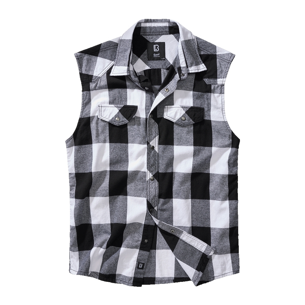 Košile Brandit Check Shirt Sleeveless - černá-bílá, XXL