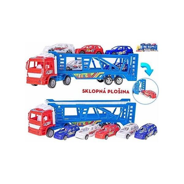 Přepravník aut 38cm na setrvačník s auty 5ks volný chod 2barvy
