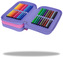 Piórnik potrójny z wyposażeniem Zawartość: - 18 kredek ołówkowych - 18 flamastrów - ołówek - 3 długopisy - ekierka - kątomierz - gumka do ścierania - temperówka - nożyczki Rozmiar: 19,5 x 12,5 x 6,5 cm przeczytaj całość