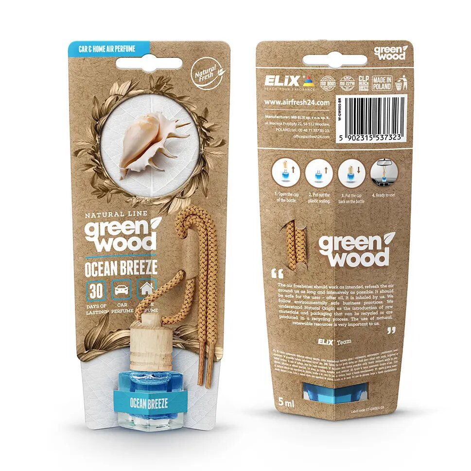 GREEN WOOD - Osvěžovač vzduchu s dřevěným víčkem Ocean Breeze