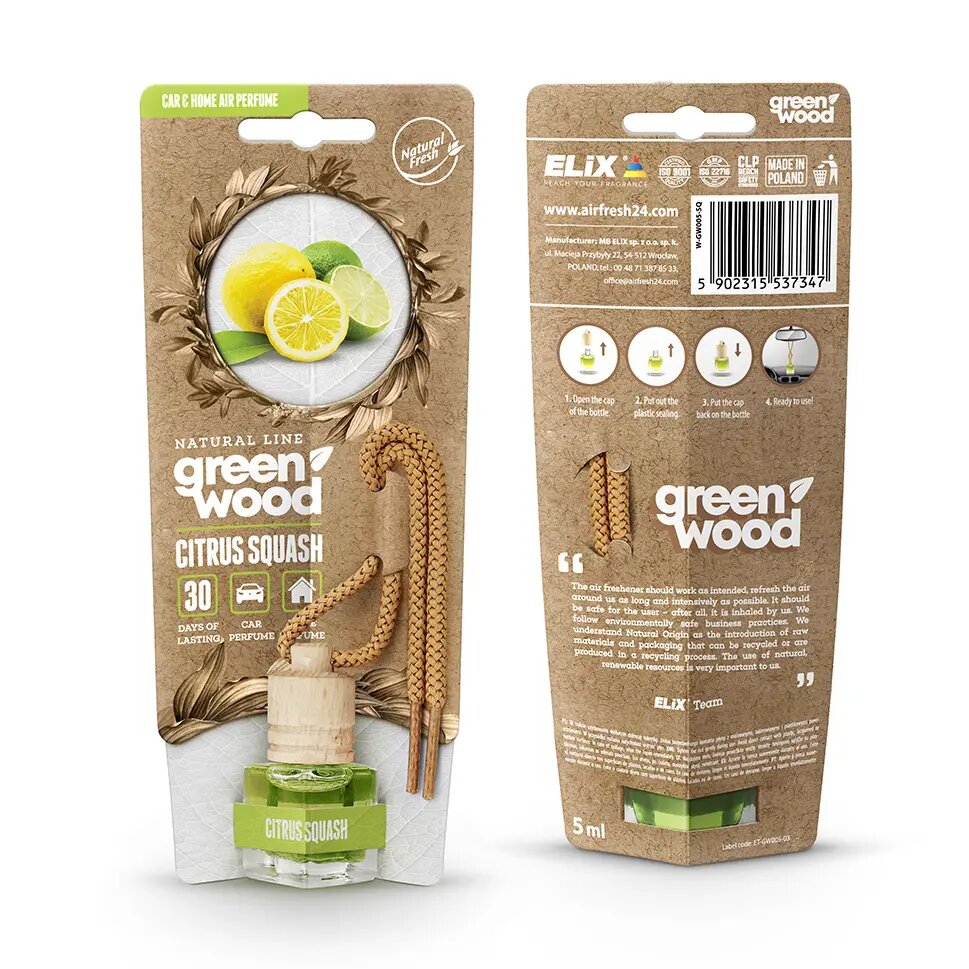 GREEN WOOD - Osvěžovač vzduchu s dřevěným víčkem Citrus Squash
