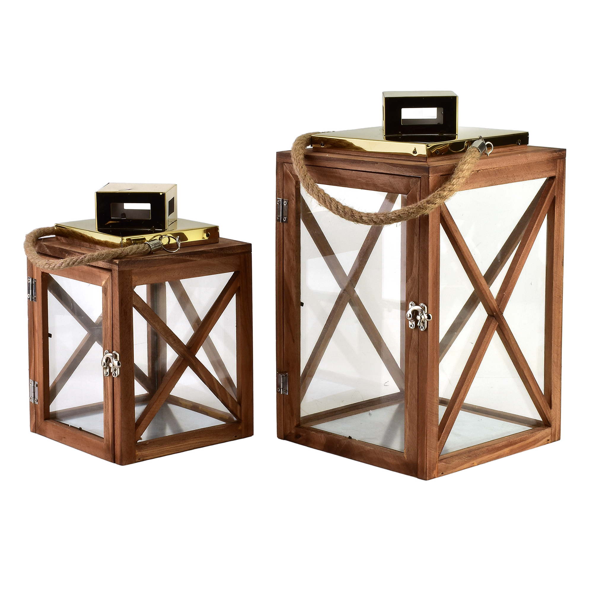 LEVI GOLD Komplet 2 latarni 20,5x20,5x36cm/17x17x26cm złoty dach, sznur