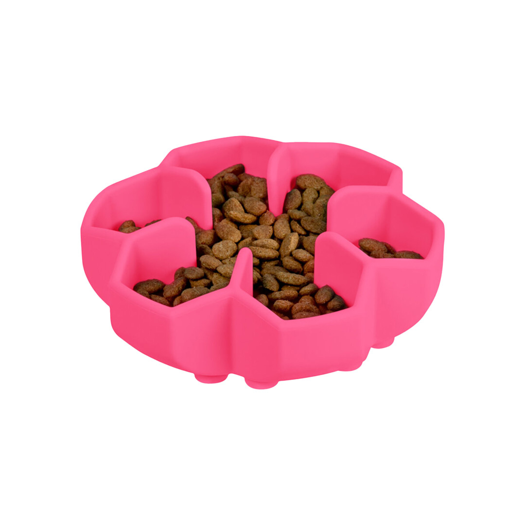 Krmte nejen zdravým jídlem, ale také zdravým způsobem! Silikonová miska pro pomalejší a zábavné krmení. Miska je s přísavkami proti klouzání nebo převrhnutí a má jedinečný tvar včelích pláství, které zpomalí krmení až 8x. Zpomalením se stává krmení zdravější, protože pes nehltá. Díky tomu polyká...