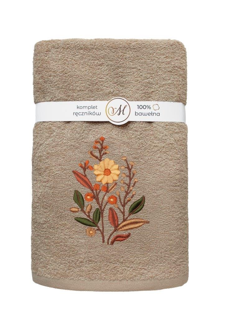 RĘCZNIK KPL.MARIBELLA 3 SZT./30X50/50X100/70X140/ FROTTE HAFT 001 KWIATKI JASNY BEŻ