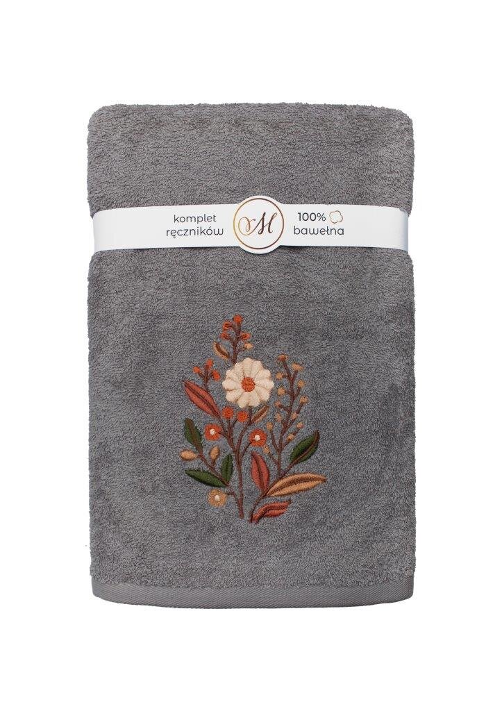 RĘCZNIK KPL.MARIBELLA 3 SZT./30X50/50X100/70X140/ FROTTE HAFT 001 KWIATKI CIEMNY SZARY