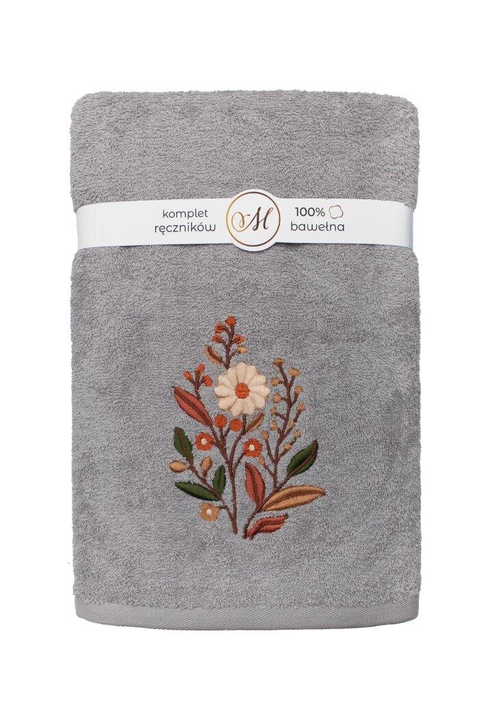 RĘCZNIK KPL.MARIBELLA 3 SZT./30X50/50X100/70X140/ FROTTE HAFT 001 KWIATKI JASNY SZARY