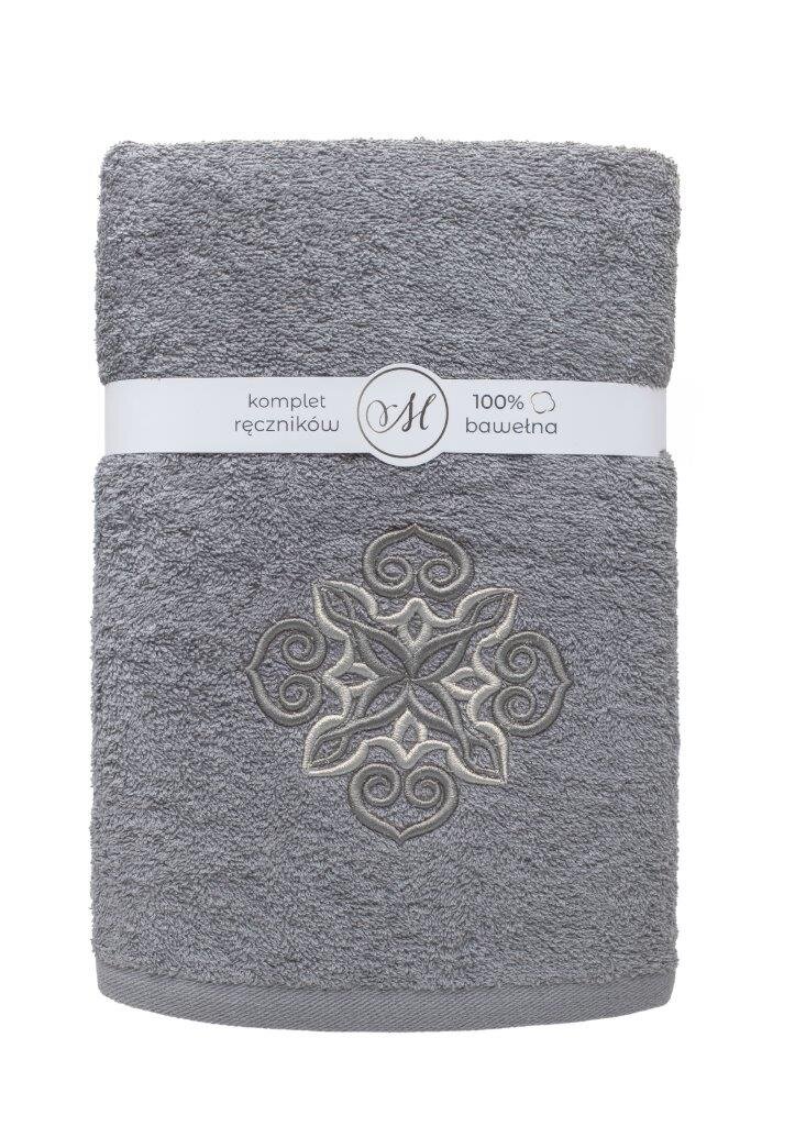 RĘCZNIK KPL.MARIBELLA 3 SZT./30X50/50X100/70X140/ FROTTE HAFT 005 MANDALE JASNY SZARY