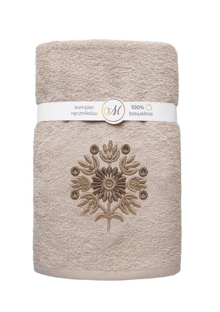 RĘCZNIK KPL.MARIBELLA 3 SZT./30X50/50X100/70X140/ FROTTE HAFT 002 SŁONECZNIK KAWA Z MLEKIEM