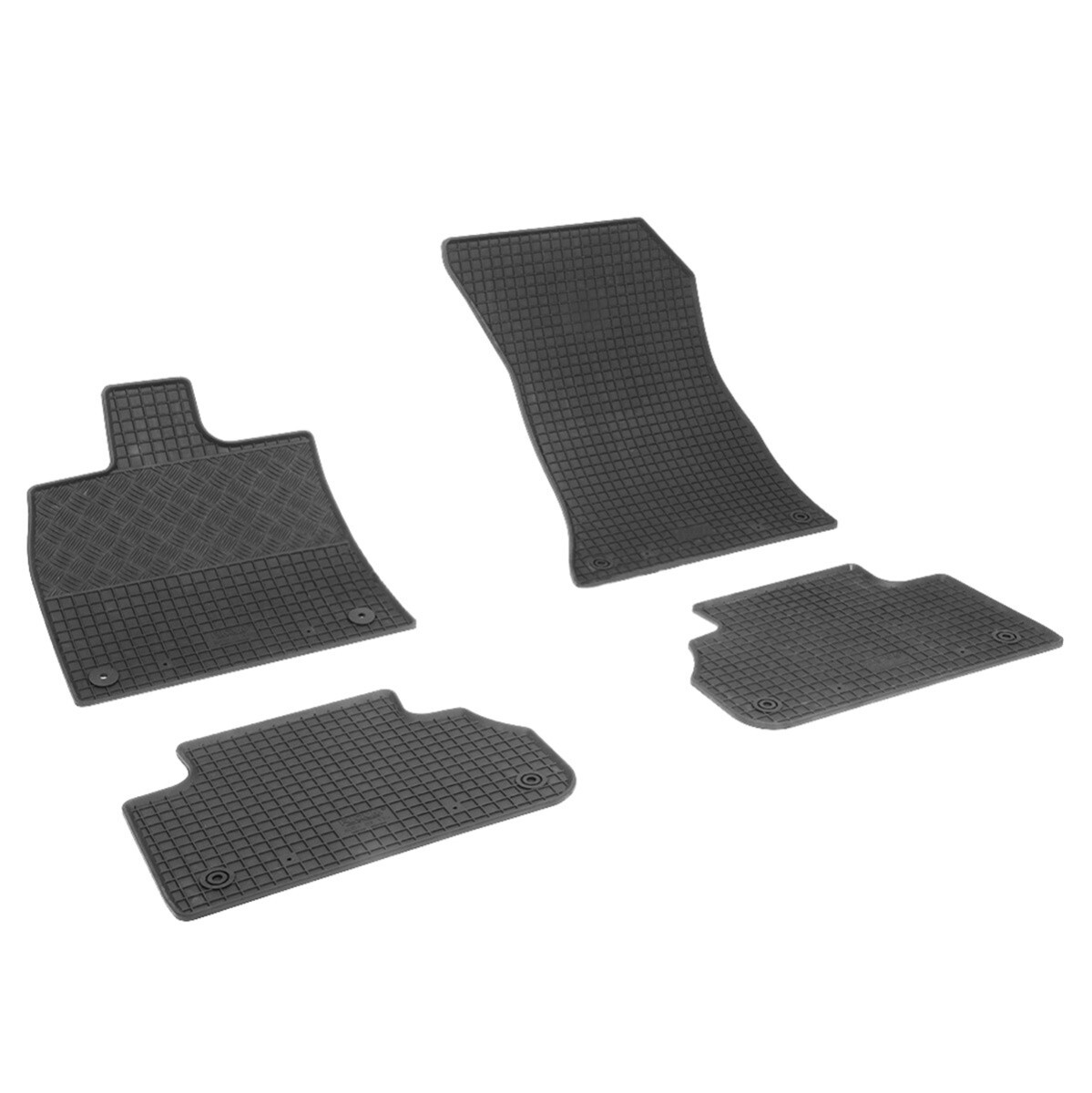 Kvalitní gumové autokoberce pro vůz Škoda Enyaq iV. Autokoberce mají tradiční (čtverčkovaný) design, díky kterému nedochází k přelévání vody, popř. tajícího sněhu po kobercích. Okraj autokoberců je přibližně 1 cm vysoký.