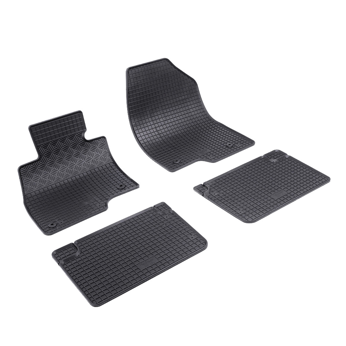 Kvalitní gumové autokoberce pro vůz Mazda 6. Autokoberce mají tradiční (čtverčkovaný) design, díky kterému nedochází k přelévání vody, popř. tajícího sněhu po kobercích. Okraj autokoberců je přibližně 1 cm vysoký.