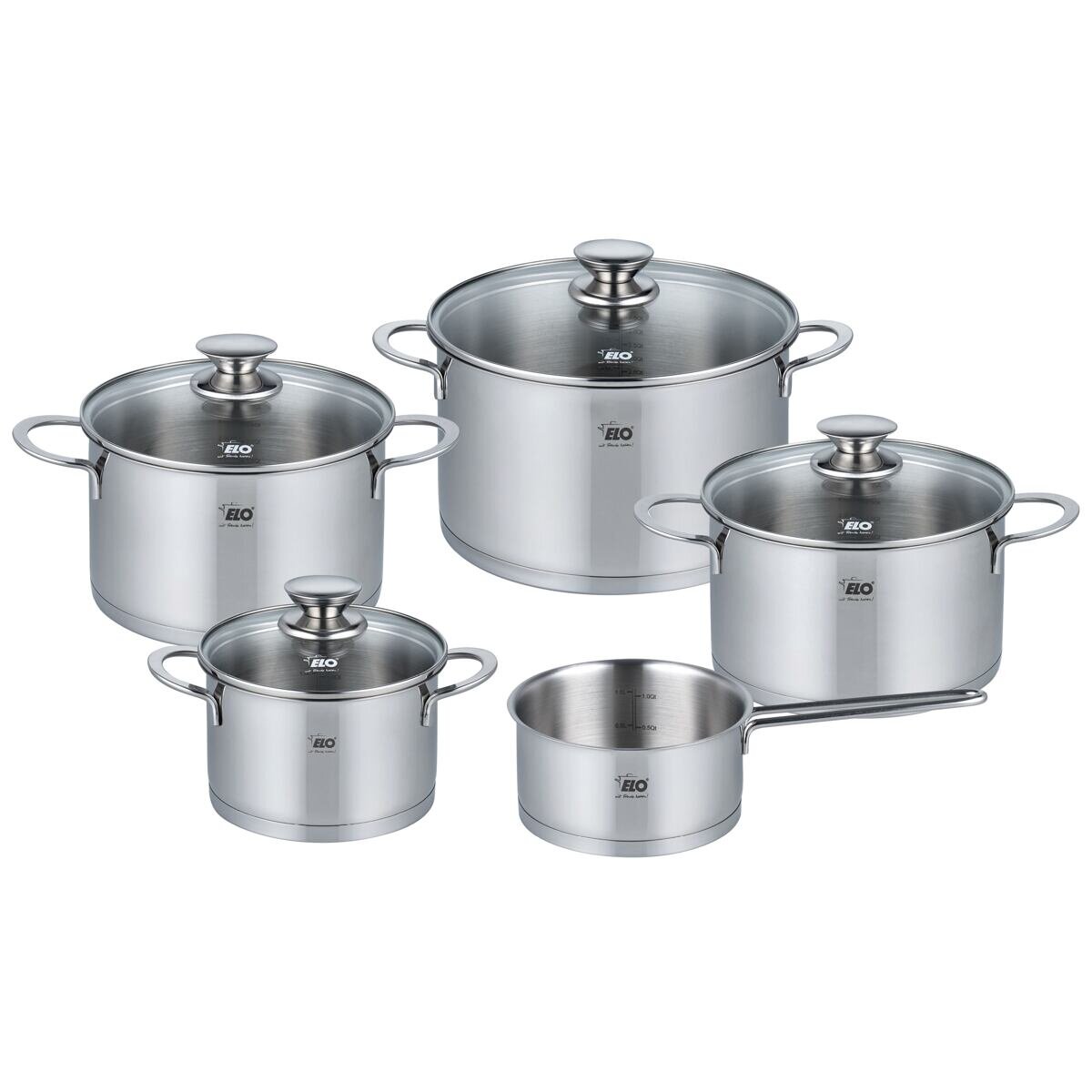 Sada hrnců 5 ks Galant ELOSada hrnců Galant od značky ELO je ideální volbou pro všechny, kteří ocěnějí kvalitní a elegantní kuchyňské nádobí. Hrnce jsou vyrobeny z nerezové oceli 18/10 a jejich saténový vnitřní povrch je doplněn integrovanou objemovou stupnicí pro snadné odměřování tekutin. Oil...