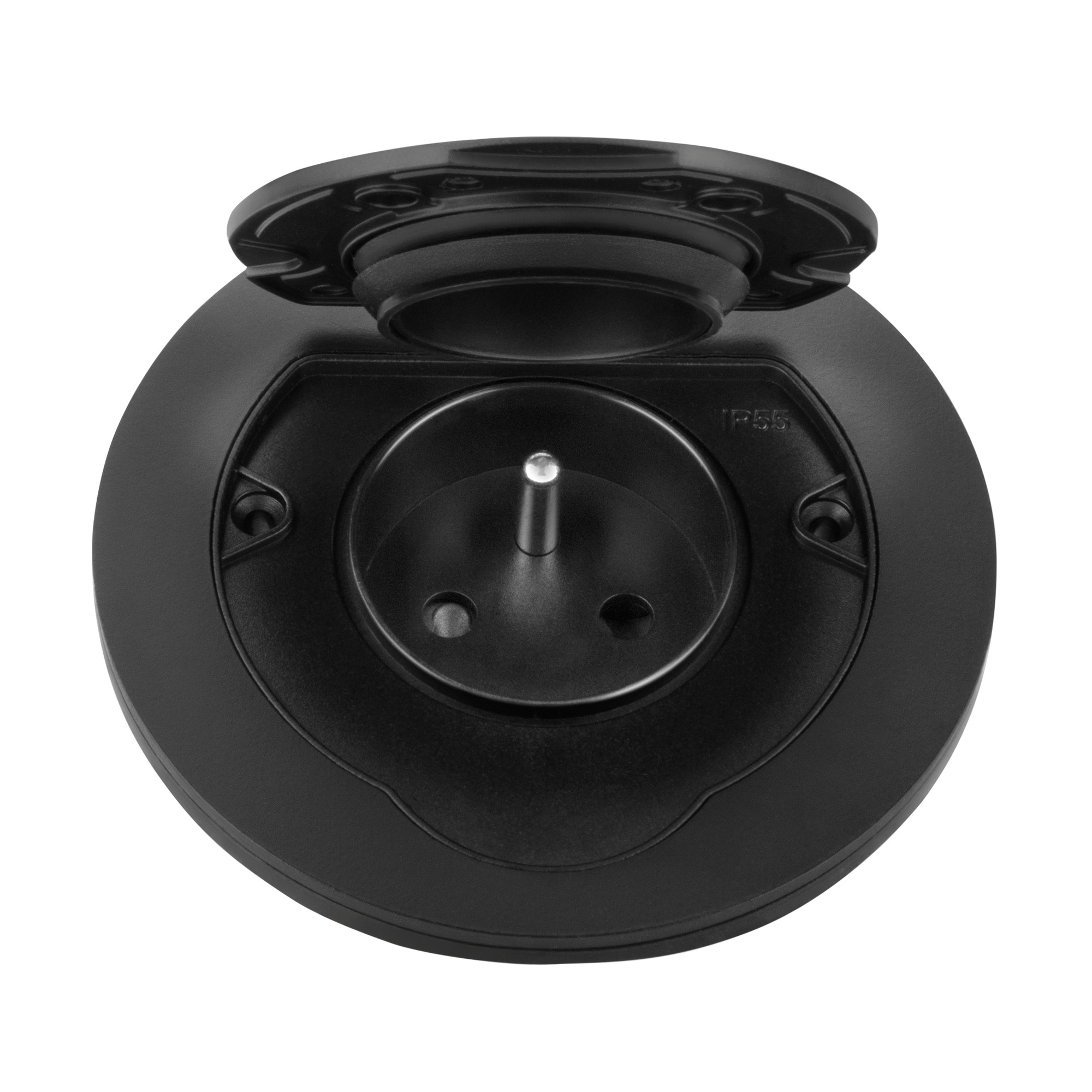 Wysoki stopień ochrony IP55 zapewnia, że produkt jest odporny na kurz i rozbryzgiwającą wodę i może być bezpiecznie użytkowany przez wiele lat. Gniazdo wykonane jest z wytrzymałej stali cynkowej oraz wysokiej jakości tworzywa sztucznego, co gwarantuje niezawodną eksploatację. Czarne wykończenie jest estetyczne i minimalistyczne. Wbudowana osłona dodatkowo chroni gniazdo przed kurzem i wilgocią. Pokrywa otwiera się pod kątem 110°, co pozwala na wygodny dostęp do gniazd.