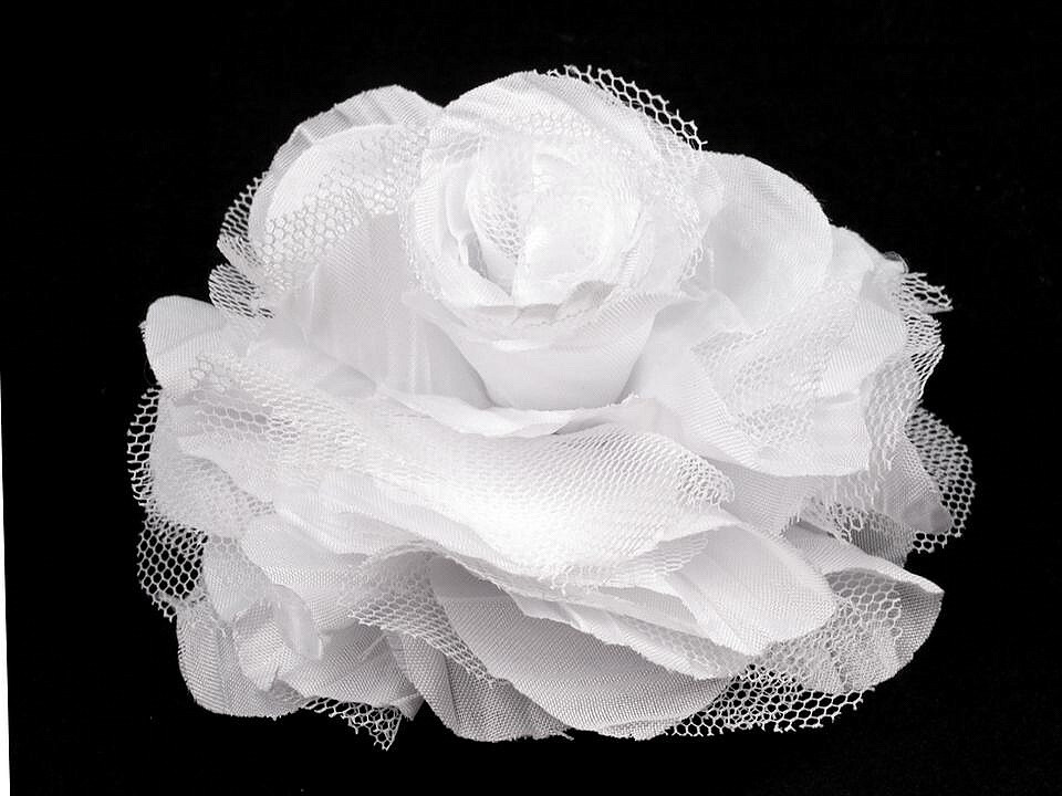 Brož / ozdoba růže Ø9 cm - 1 ks - 4 bílá