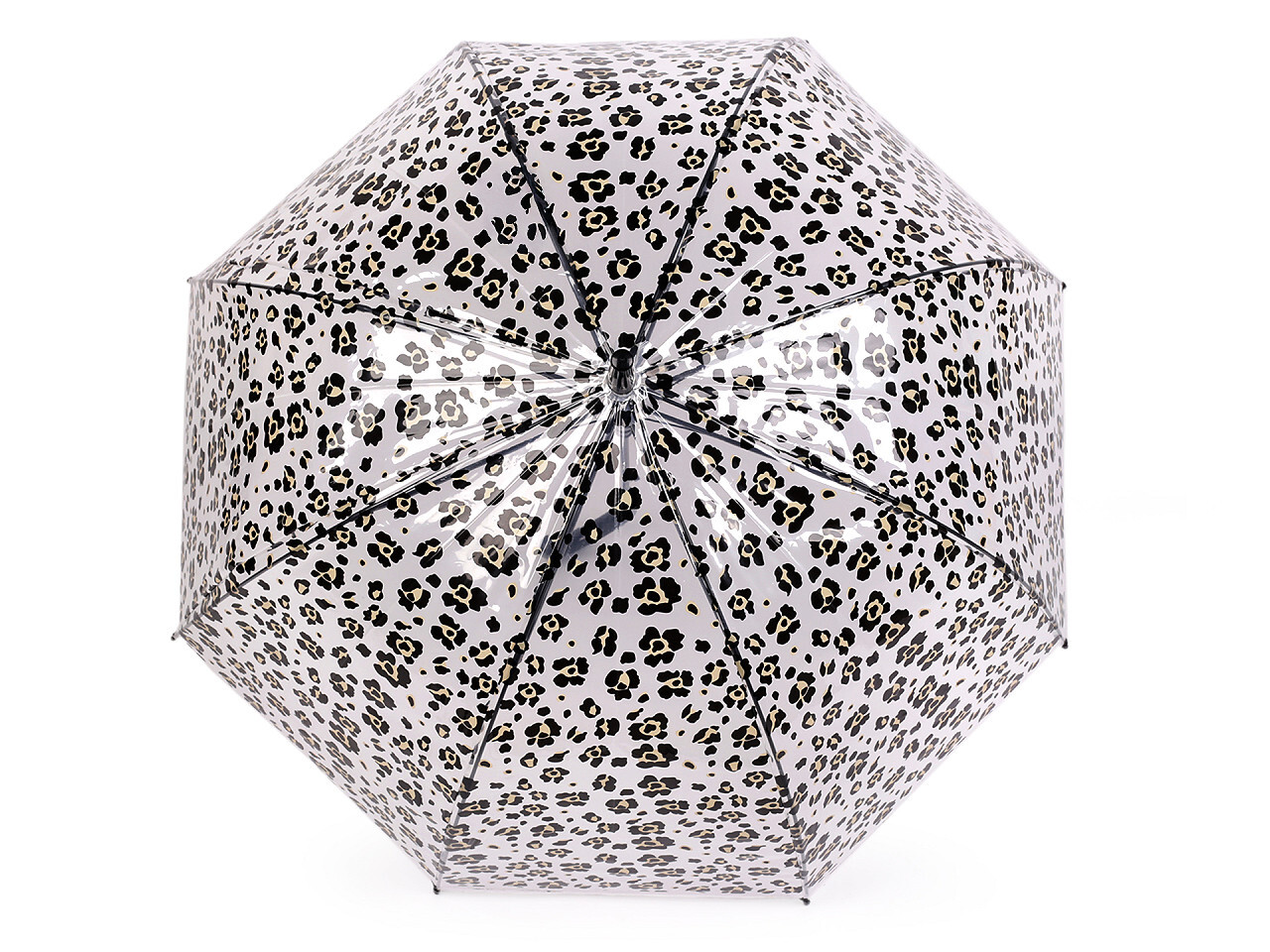 Dámský / dívčí průhledný vystřelovací deštník leopard - 1 ks - 1 krémová světlá