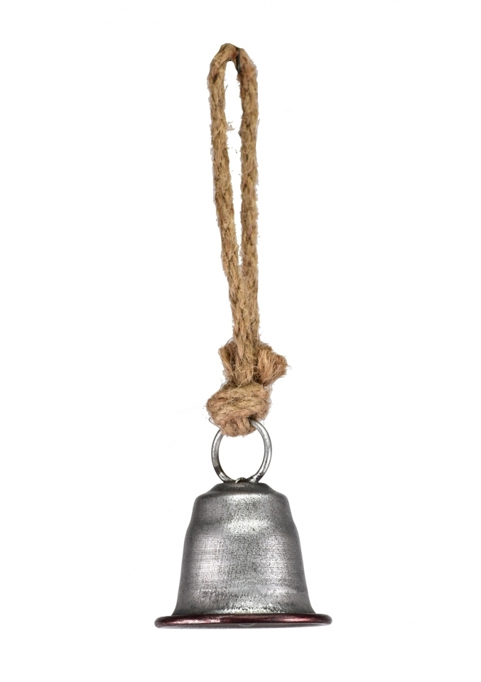 Kovový zvonek stříbrný na jutovém provaze 7x5,8x25 cm