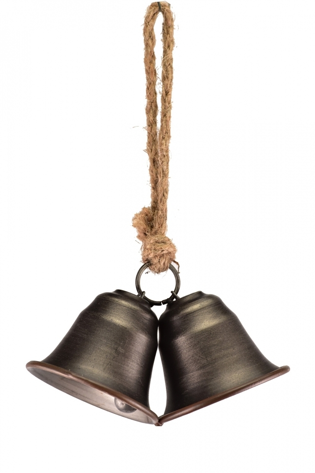 Dvojitý kovový zvonek šedý na jutovém provaze 8x15x25 cm