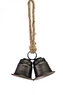 Dvojitý kovový zvonek šedý na jutovém provaze 14x12x25 cm