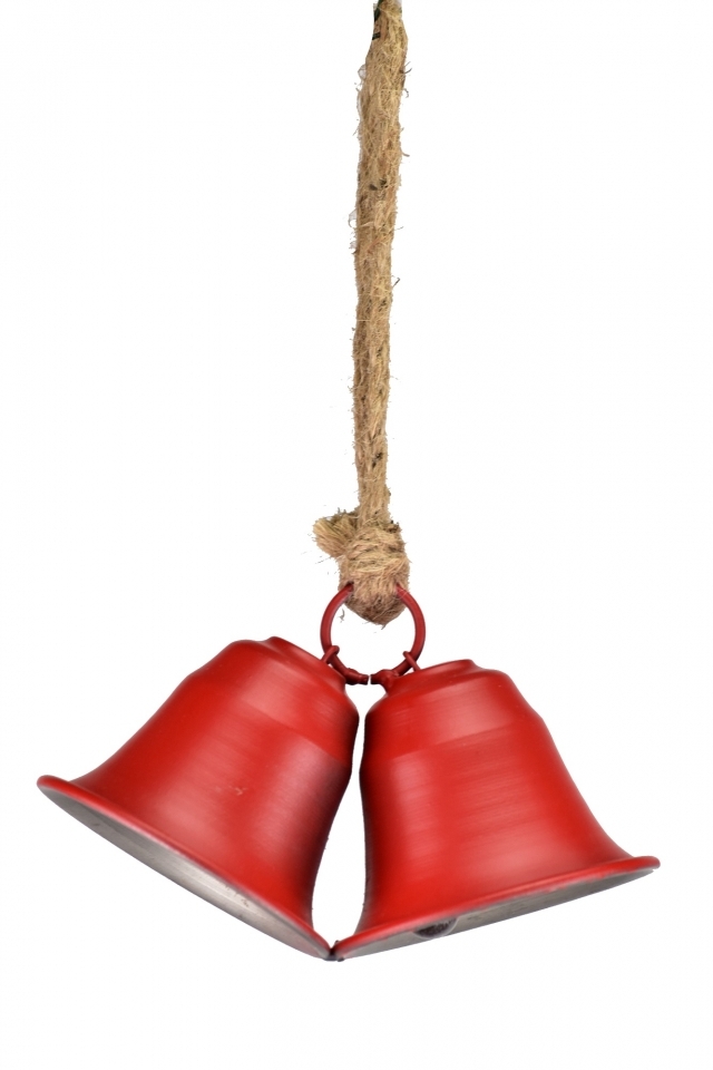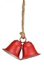 Dvojitý kovový zvonek červený na jutovém provaze 8x15x25 cm