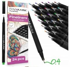 Cienkopisy 0,4 mm, zestaw 24 kolorów + zakładka do kolorowania GRATIS Zestaw 24 kolorowych cienkopisów o grubości 0,4 mm, idealny do precyzyjnego pisania, rysowania, a także do zastosowań artystycznych i biurowych. W zestawie dodatkowo znajdziesz zakładkę do kolorowania, którą możesz użyć jako kreatywną przerwę podczas czytania książek. Idealne do szkoły, pracy czy jako prezent dla bliskiej osoby.