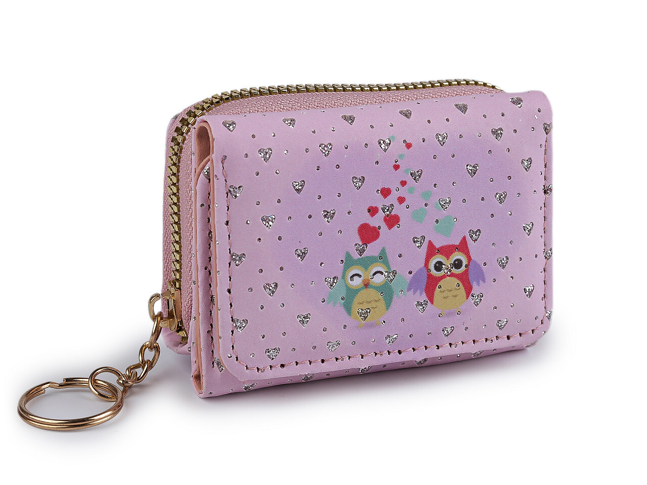 Mini peněženka dětská 7x8,5 cm - 1 ks - 20 růžová sv. sova