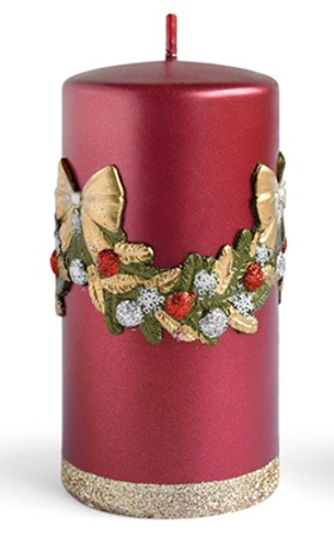 Świeca GIRLANDA Aplikacja walec mały 7xh10cm bordowa