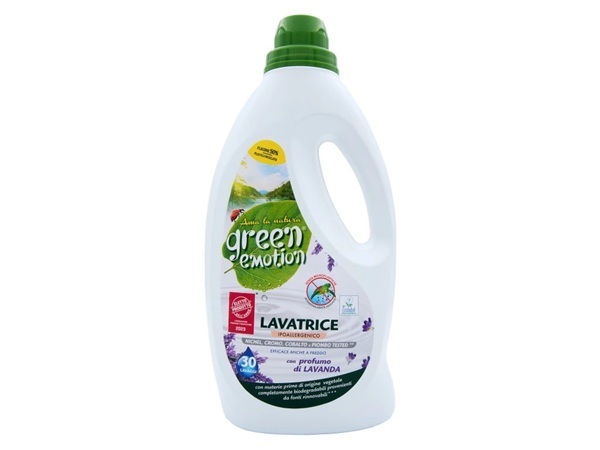 Green Emotion Lavatrice jest również przyjazny dla środowiska: nie zawiera fosforanów ani mikroplastików, nie był testowany na zwierzętach i zawiera biodegradowalne surowce pochodzenia roślinnego z odnawialnych źródeł. Opakowanie o pojemności 1,5 litra wystarcza na około 30 cykli prania, dzięki czemu zapewnia doskonały stosunek jakości do ceny.