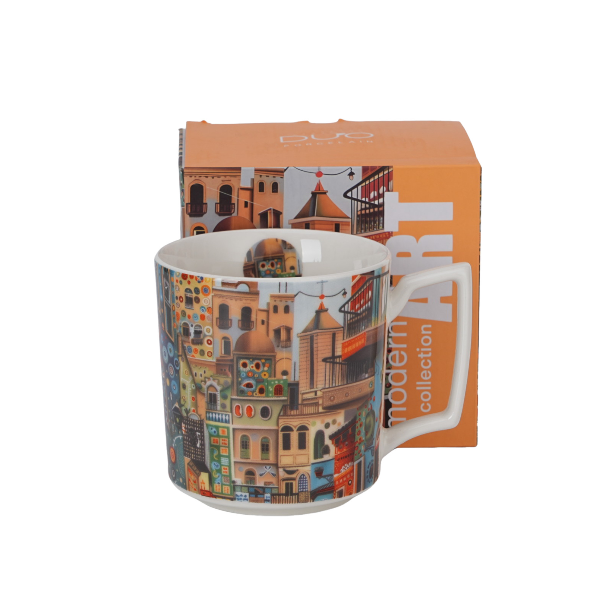 Kubek SWEET CITY wchodzący w skład linii MODERN, wykonany z porcelany New Bone China, charakteryzującej się elegancką i naturalną kremowo - białą barwą z delikatnym połyskiem a także wyjątkową wytrzymałością przy zachowaniu lekkości i delikatności.Linia zdobiona futurystycznym obrazem...