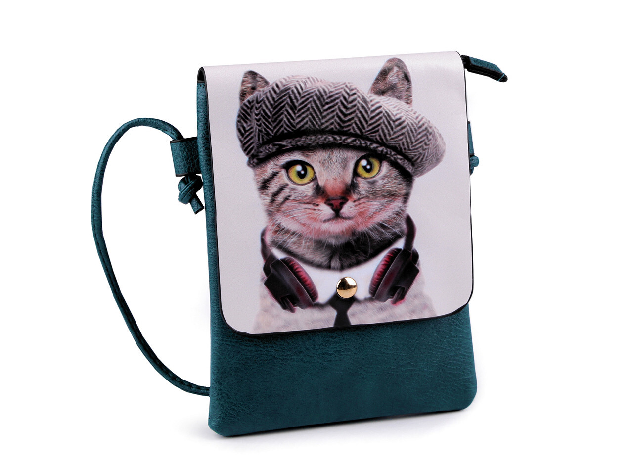 Kabelka malá kočka, květ, jednorožec, jelen, kůň 15,5x21 cm - 1 ks - 7 modrozelená kočka