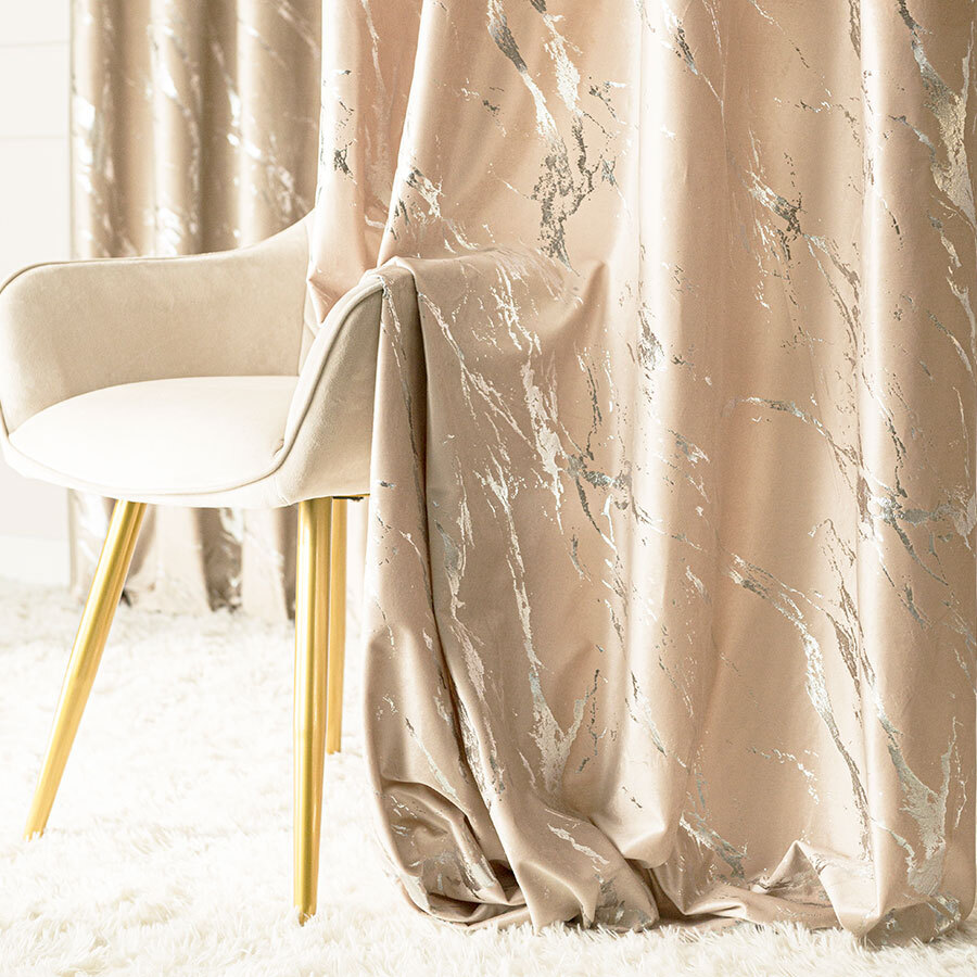 Dekorační vzorovaný závěs s řasící páskou MARBE 003 světle béžová/stříbrná 140x250 cm (cena za 1 kus) MyBestHome