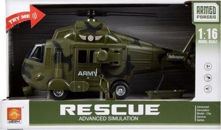 Helikopter MEGA CREATIVE to prawdziwa gratka dla fanów wznoszenia się między chmury. Zabawa wojskowym Helikopterem może trwać w nieskończoność! Helikopter w skali 1:16. Posiada efekty świetlne i dźwiękowe oraz linkę z hakiem, którą można opuszczać. Wymaga zasilania 3 bateriami AG13 - załączonymi do zestawu. Produkt przeznaczony dla dzieci w wieku: 3+.