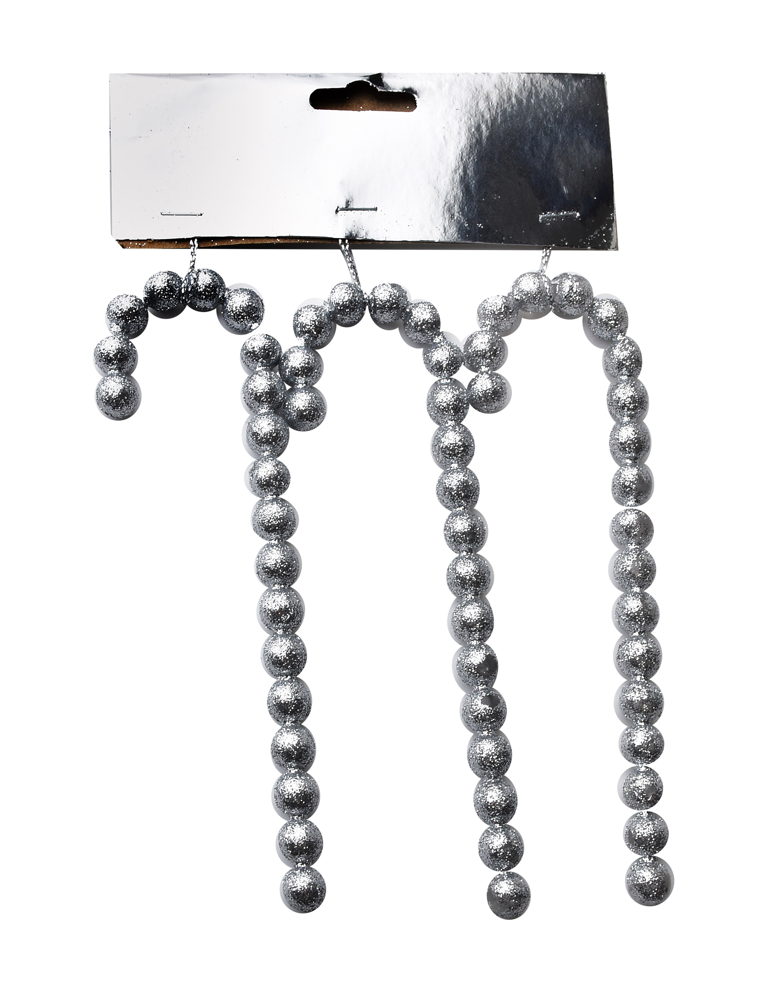 Komplet trzech zawieszek świątecznych SANTA LILA w kolorze srebrnym to stylowa i błyszcząca ozdoba, która doskonale uzupełni zimową aranżację wnętrza. Każda zawieszka ma formę laski o długości około 15 cm (4 x 0,5 x 14 cm) i została wykonana z połączonych styropianowych kulek, pokrytych srebrnym...