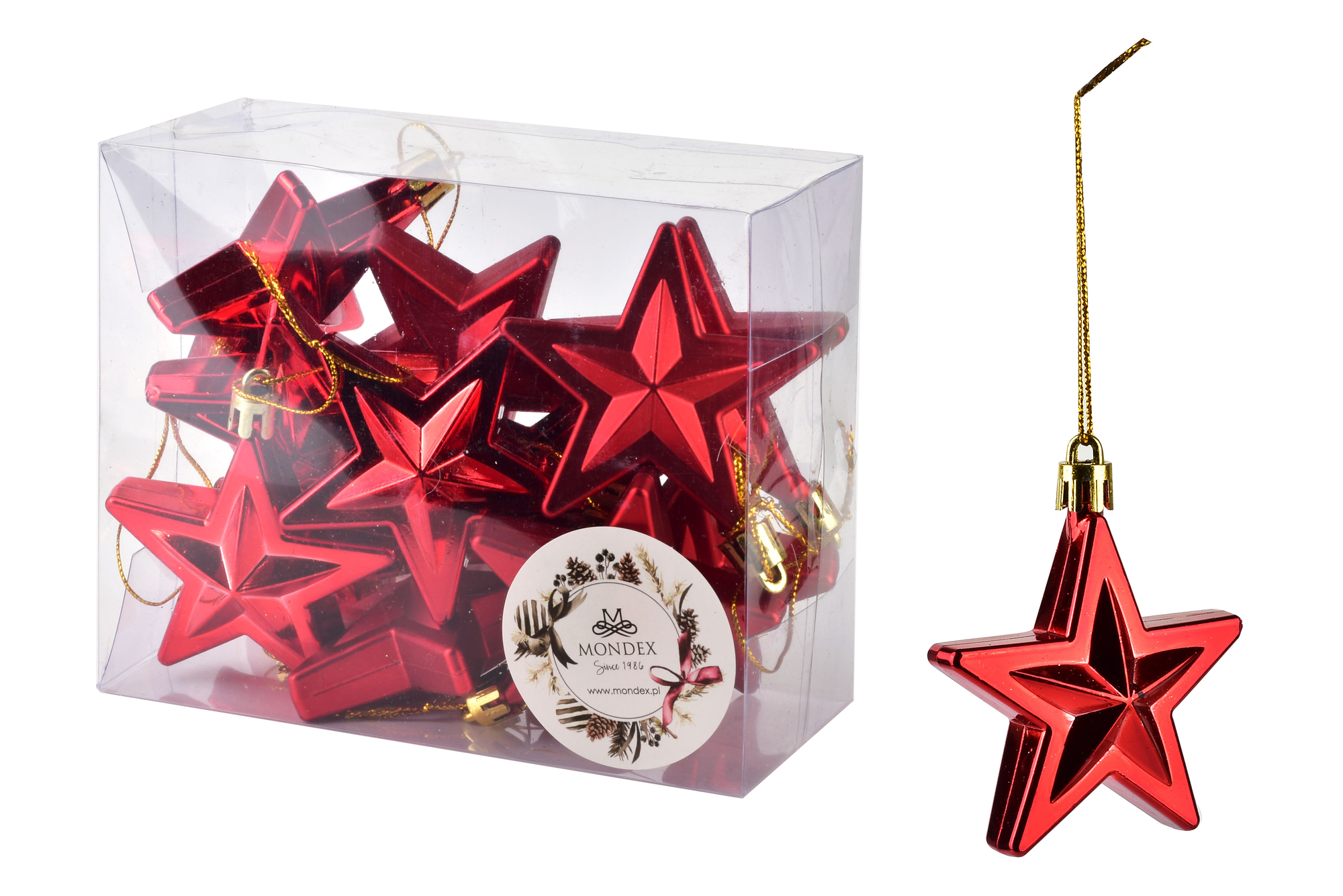 SANTA LILA Komplet 12 bombek GWIAZDKI cczerwone