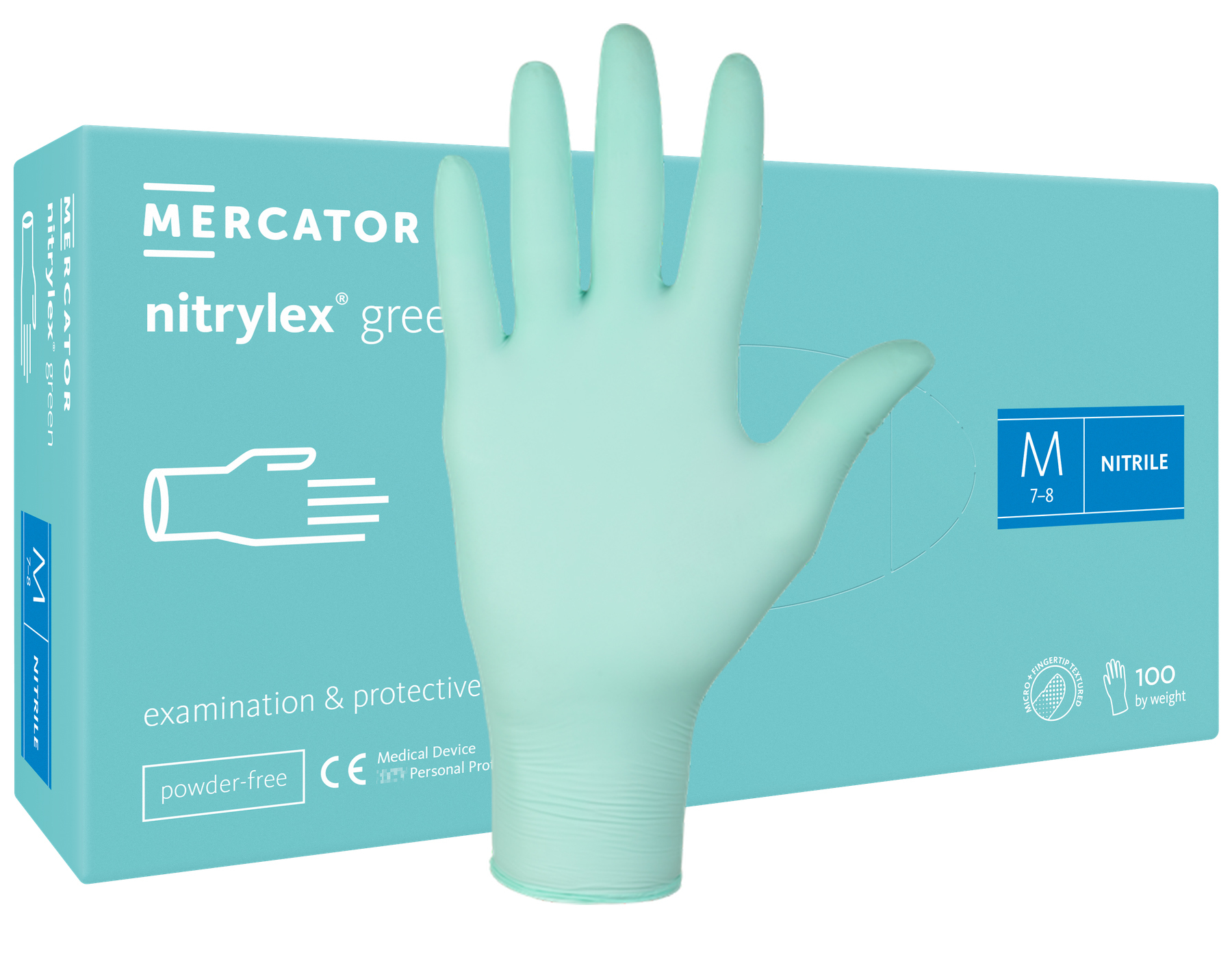 Jednorázové nitrilové zdravotnické rukavice Mercator NITRYLEX zelené 100 ks Velikost: S
