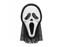 Maska z kapturem Halloween w kolorze biało-czarnym, wymiary maski ok. 18 x 31 cm, długość kaptura ok. 38 cm. przeczytaj całość