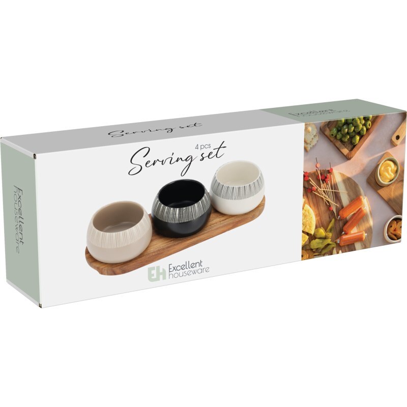 EXCELLENT HOUSEWARE Sada misek na pochutiny servírovací s prkénkem 3 ks KO-210001240